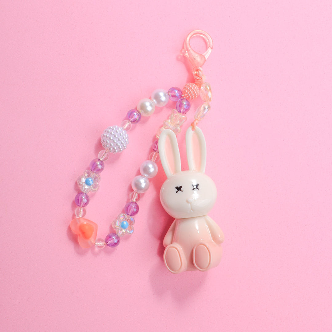 Este adorable llavero no solo es un accesorio encantador con cuentas perladas, flores y mariposas en tonos pastel, sino que también esconde un gloss tinta con acabado jugoso y color duradero. El conejito, con detalles en blanco, lila Y rosa y carita estilo "kawaii", hace que llevar tu brillo labial nunca haya sido tan divertido.